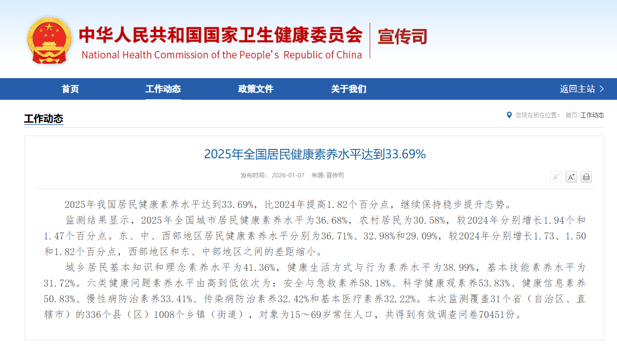 2025年我国居民健康素养水平达到33.69%长富配资,比2024年提高1.82个百分点长富配资,继续保持稳步提升态势。