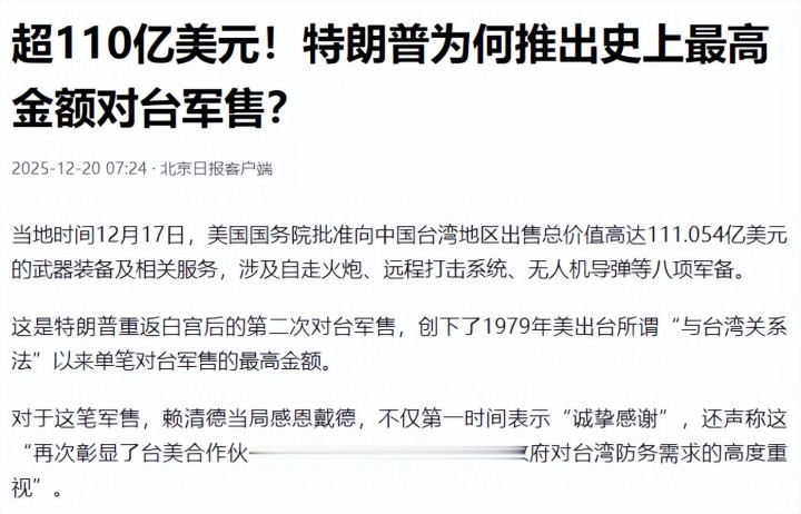 作为生意人出身的总统,他最讲究成本收益,心里比谁都清楚,真要为了台湾跟中国开战,美国根本捞不到好处。美国军工复合体虽然能靠军售赚大钱,但一旦冲突升级,美国在亚太的军事基地会被打击,全球经济会崩盘,美元霸权也会受影响,这损失可比卖武器的收益大得多。所以特朗普表面上搞“三箭齐发”,实际上是在做姿态,既想讨好国内保守派和军工复合体,又不想真的把自己拖进战争泥潭。
