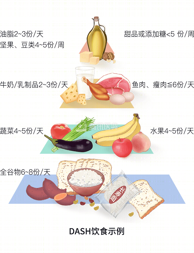 如果已经确诊了高血压,推荐一种更加健康的饮食方法——“DASH”饮食法(也叫“得舒饮食”),这是原发性高血压的推荐一线治疗方法[7]。